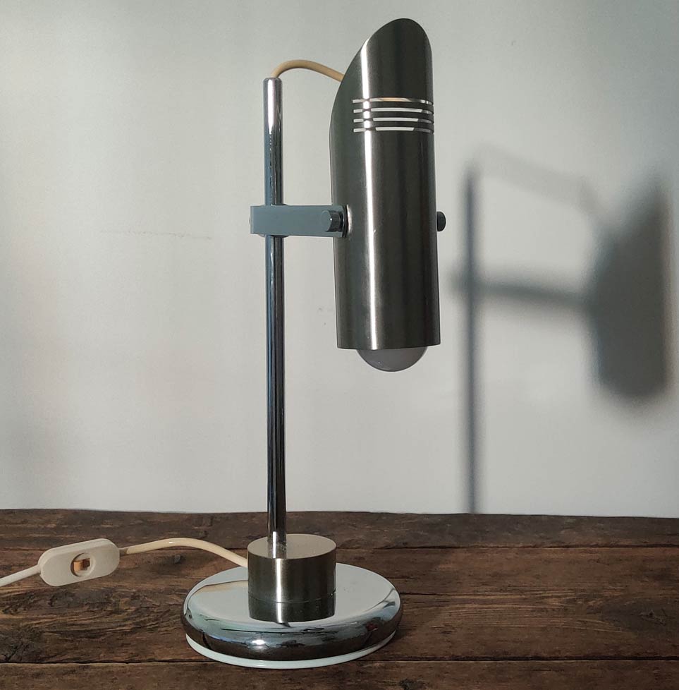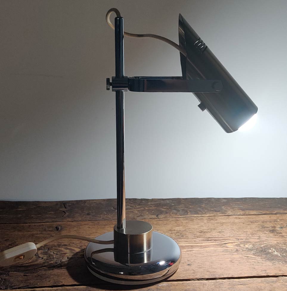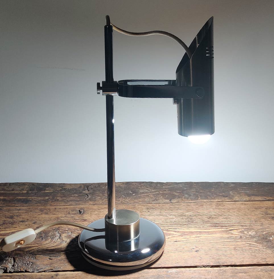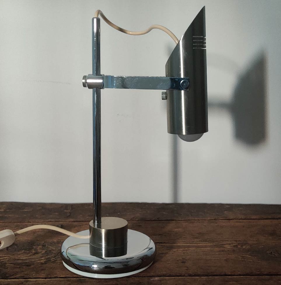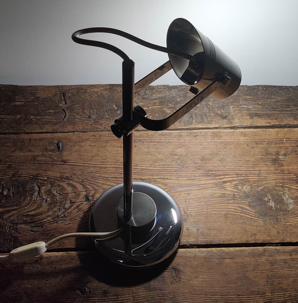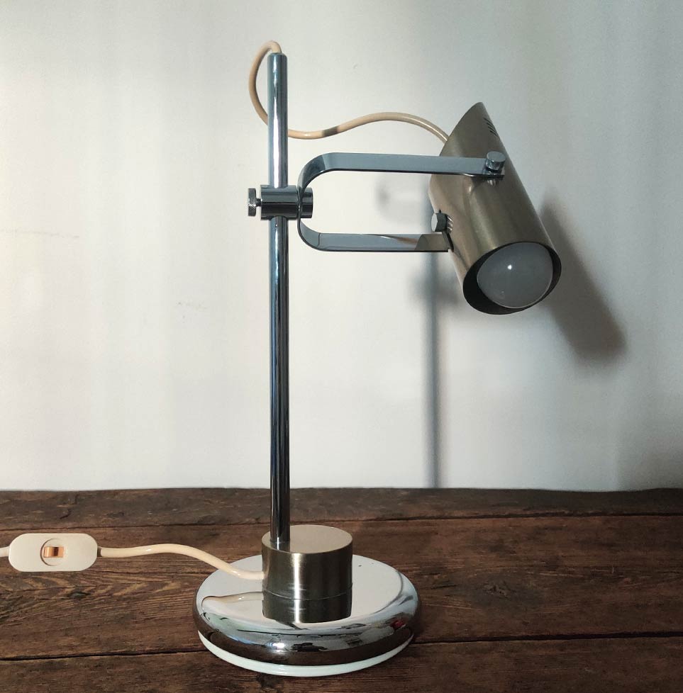 Rare Vintage Italian 1970s desk lamp in solid brass and chrome