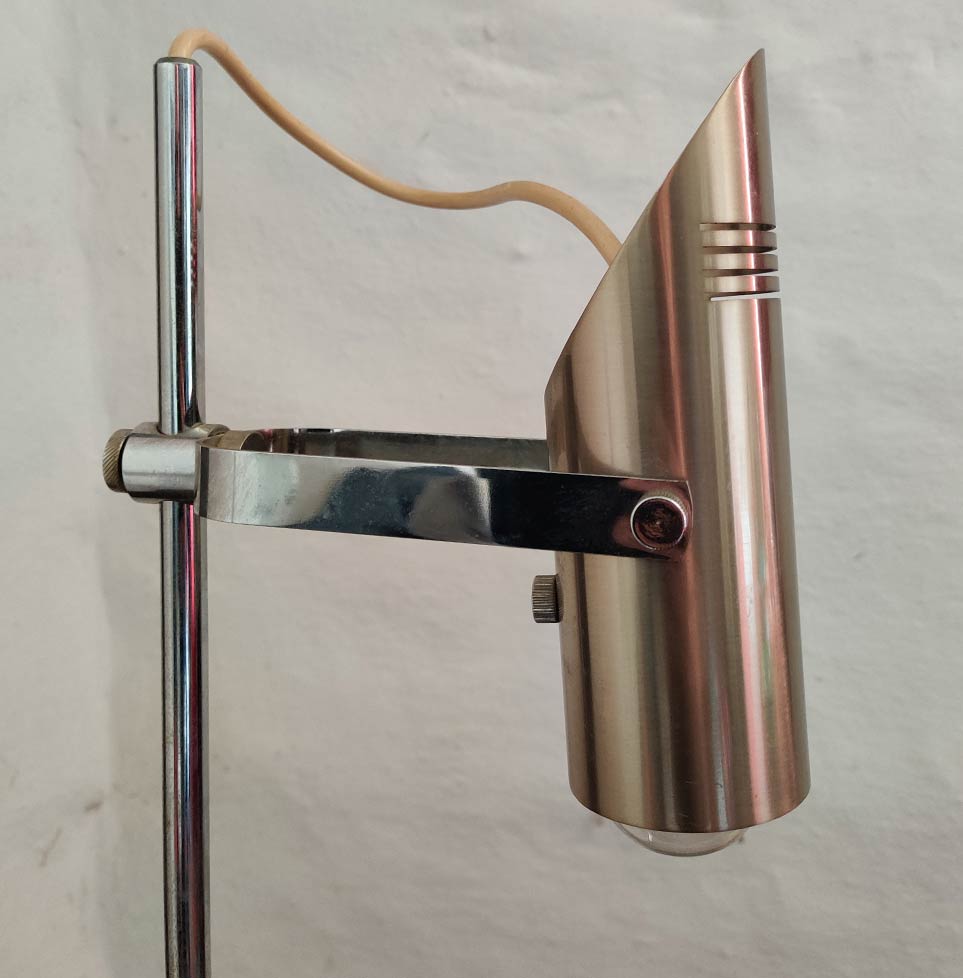 A rare Italian 1970s desk lamp in solid brass and chrome. Attributed to Goffredo Reggiani for Regianni.